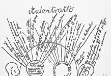 Autoritratto Corrado Govoni Occhio sinistro Ciglia Occhio destro Ciglia Orecchio destro orecchio 20 chilometri di circonferenza Naso Labbra divano pallido dei baci buco per insaccare i cibi nel sozzo sacco tromba d’oro suonata dall’angelo bianco Barba |