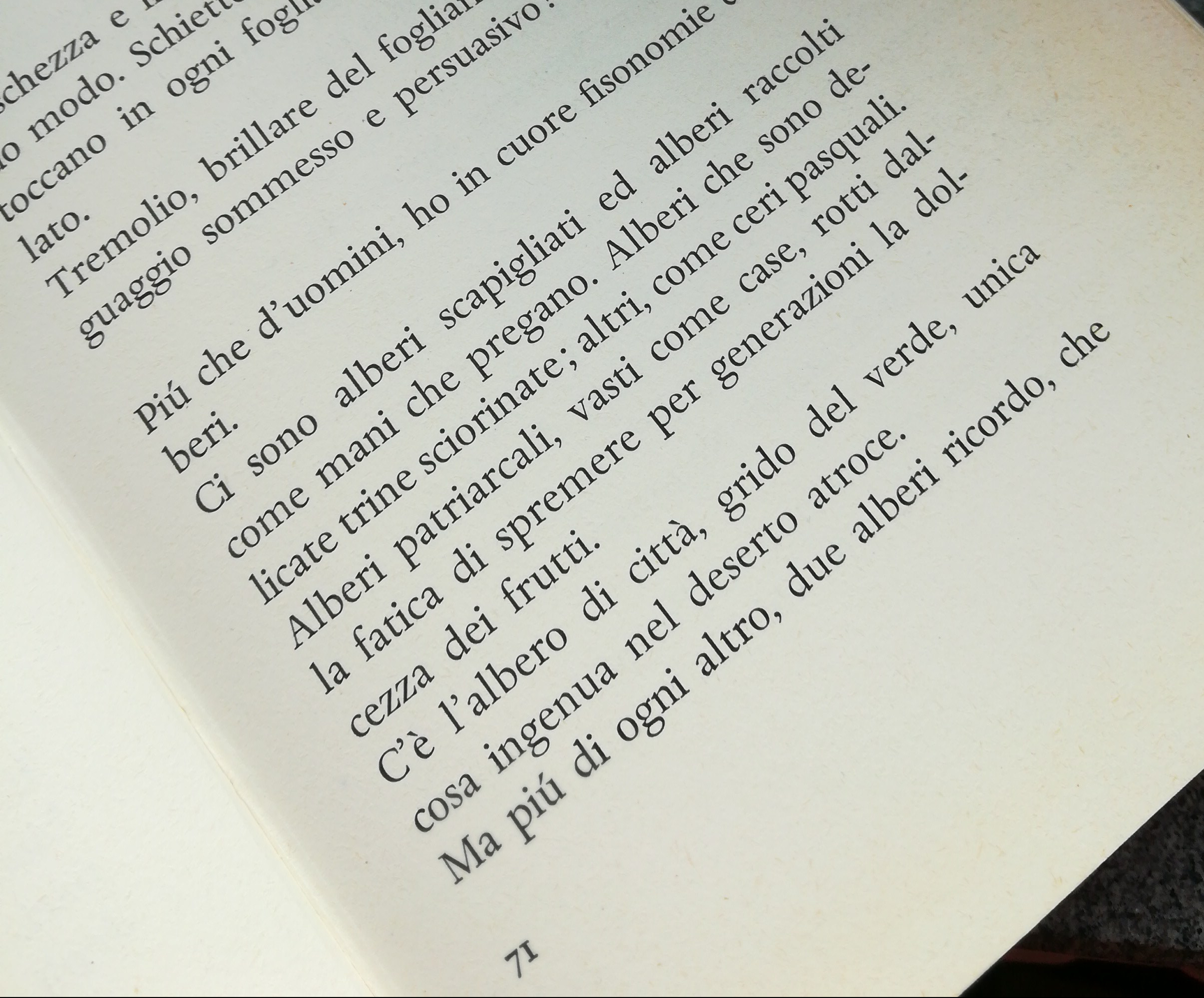 From Trucioli #38 Camillo Sbarbaro But, now, if there is anyone I envy, it’s the tree. The freshness and innocence of the tree! It grows in its own way. Sincere, serene. The sun, the water touch its every leaf. Perennially ventilated. More than that of men, in my heart I carry the physiognomy of trees. To be a tree, an ordinary tree… Translation @Matilda Colarossi 2018 |